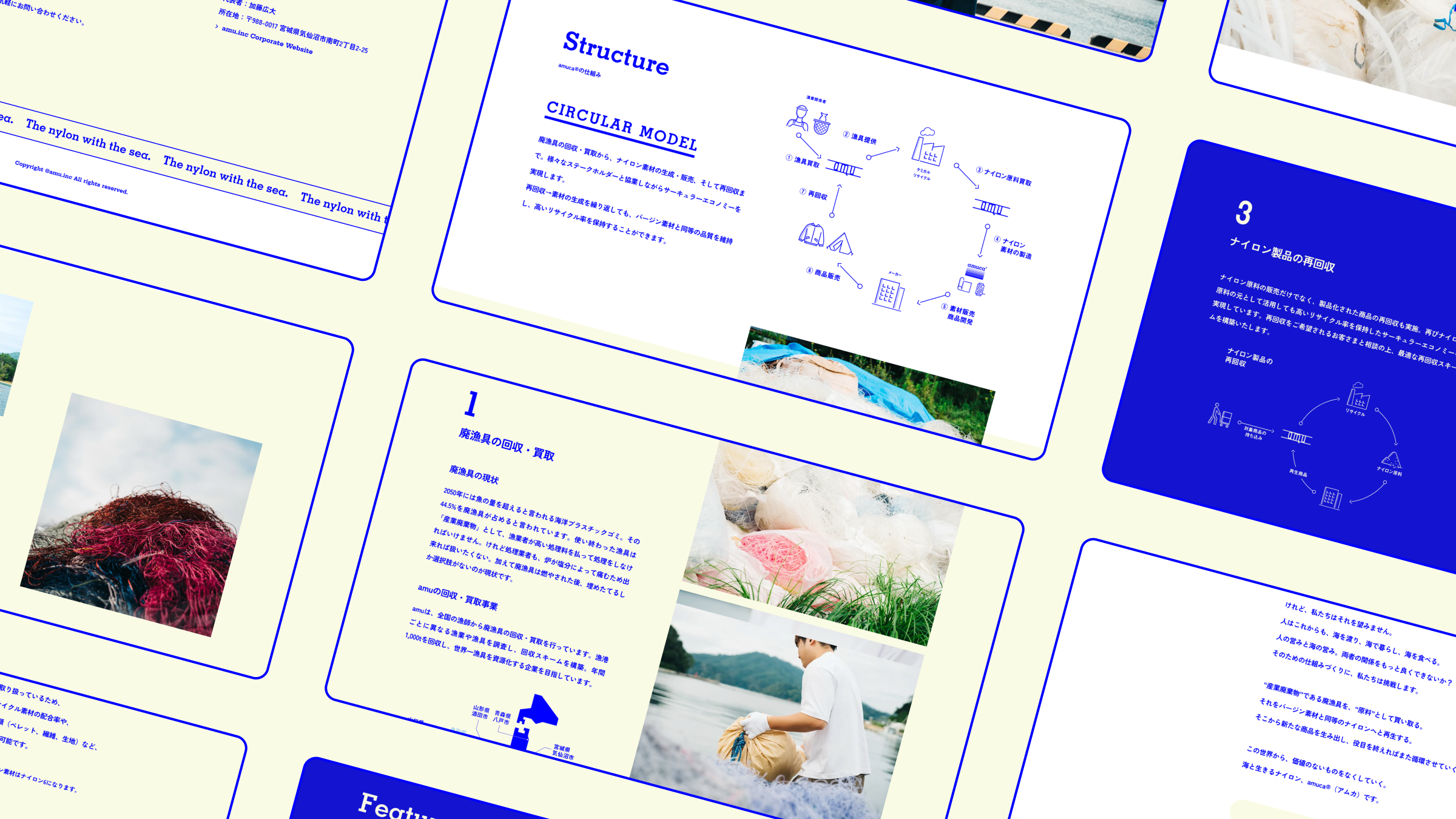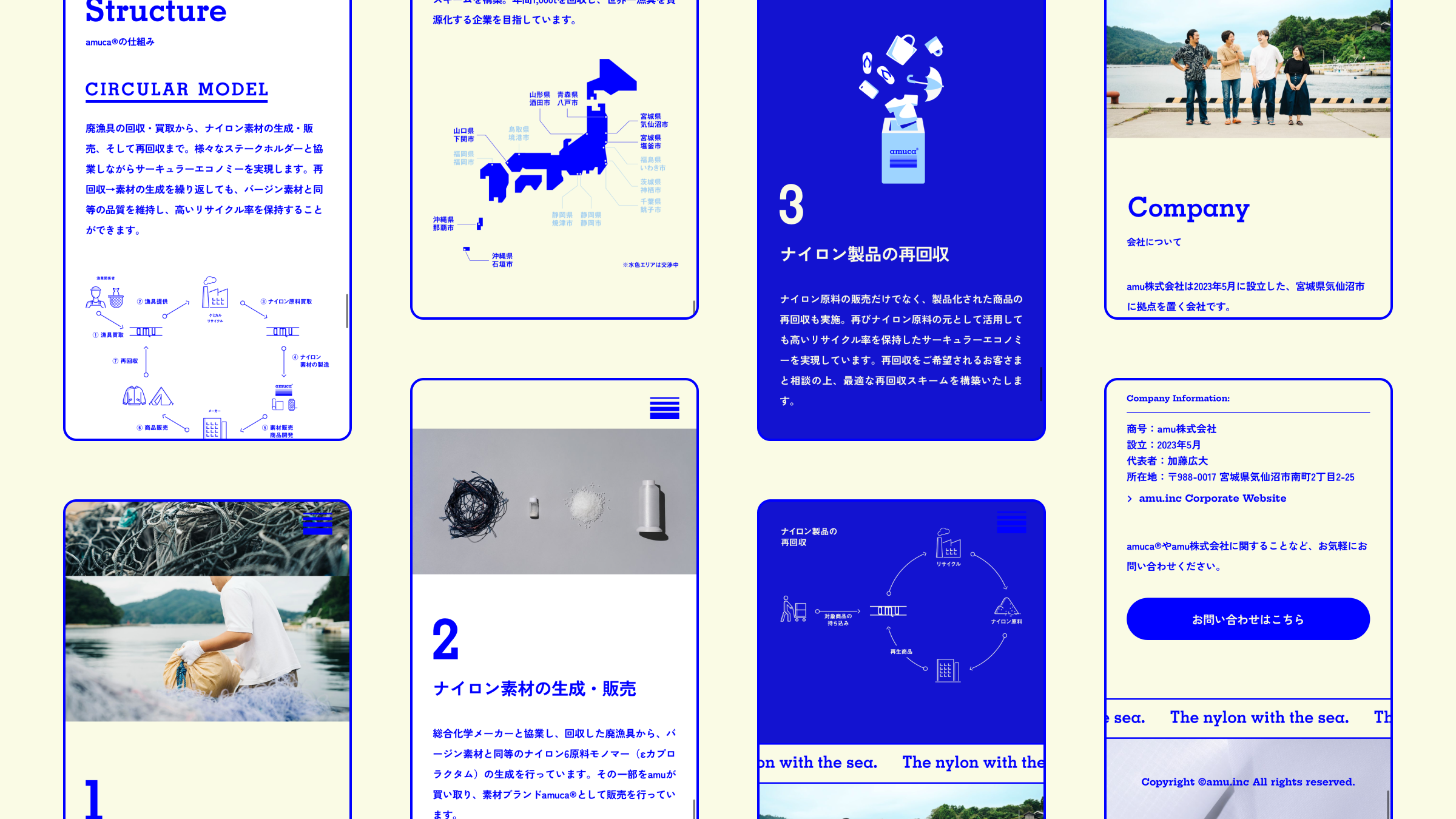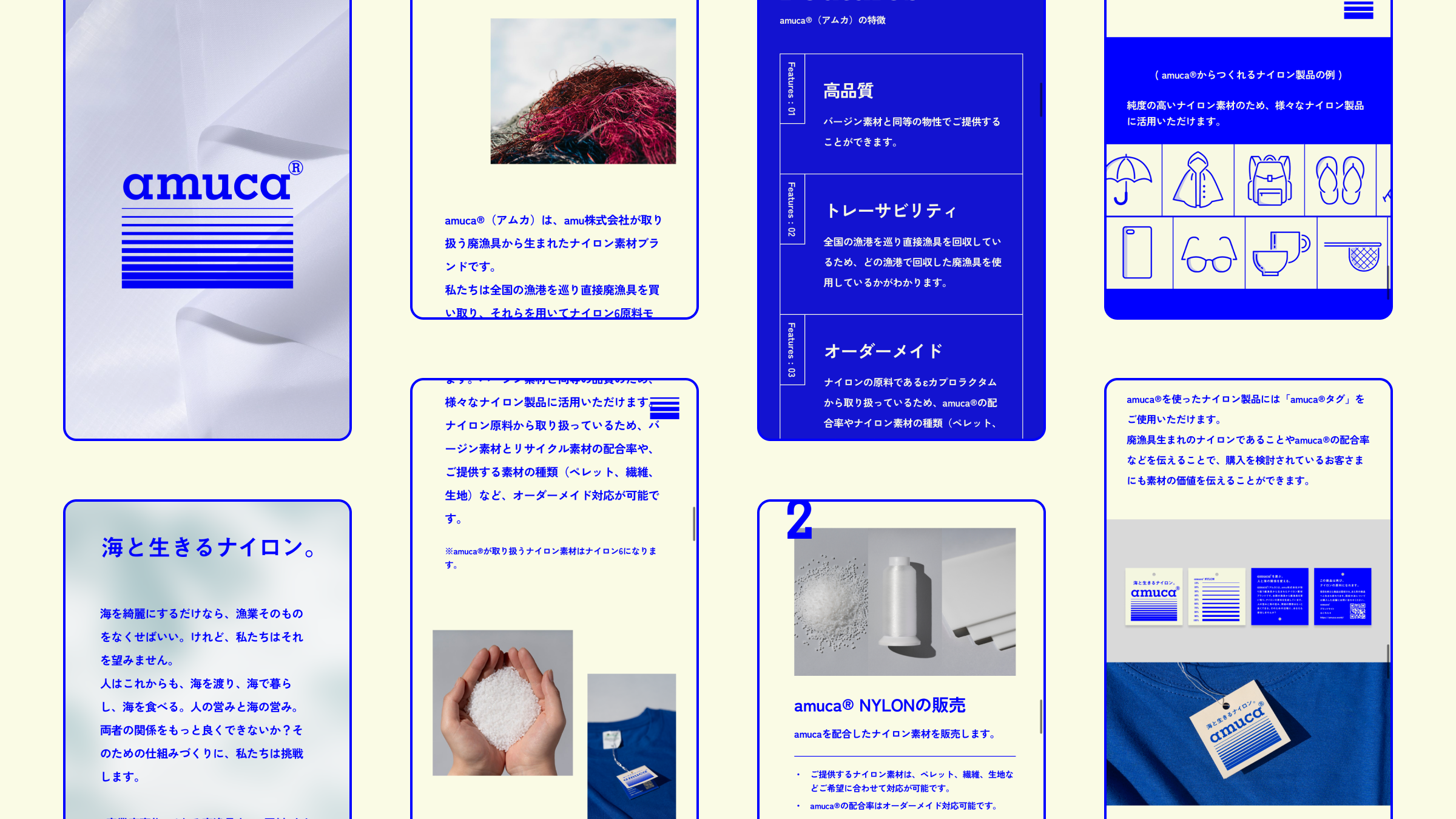 気仙沼のベンチャー発、廃漁具から生まれた新しいナイロン素材ブランド「amuca®(アムカ)」のブランドサイト。STUDIOによる制作のため、デザインから実装・公開までを担った。
